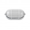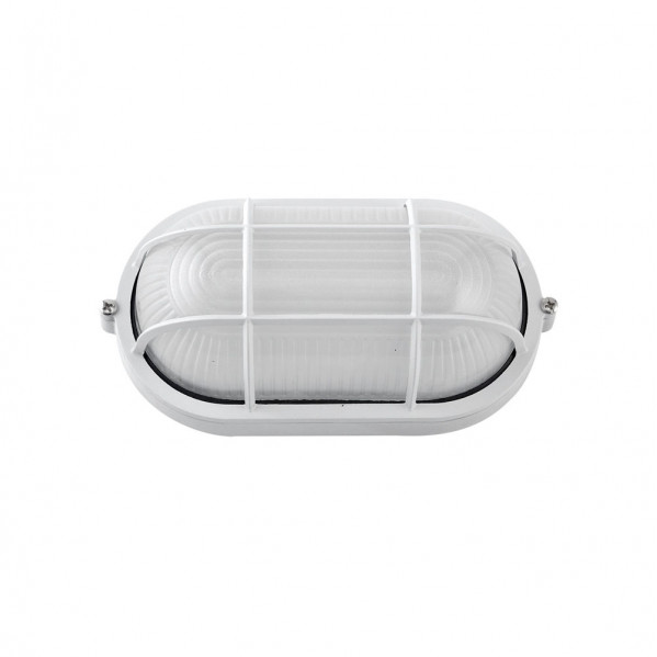 Aplique de exterior oval serie APUS, realizado en aluminio color BLANCO y cristal. Tiene una dimensión de 9x21×10,5 centímetros. Posee un portalámparas E27. Bombilla no incluida. Tiene un índice de protección de IP44. Disponible en esta misma serie oval grande y redondos en dos tamaños. Ambos diseños y tamaños en blanco y en negro.
