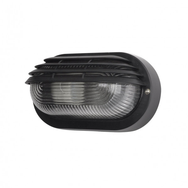 Aplique exterior oval CANOPUS, realizado en policarbonato de color NEGRO. Tiene una dimensión de 10×20,5×11,5 centímetros. Posee un porta lámparas E27. Bombilla no incluida. Índice de protección IP44. Disponible de la misma serie, aplique grande oval y aplique redondo, todos en negro y en blanco.
