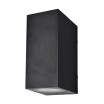 Aplique de exterior de la serie ALCE de color NEGRO con forma cubica y estilo moderno. Realizado en ABS y cristal. Sus dimensiones son 14,7x7x9 centímetros. Contiene dos portalámpara GU10. Bombillas no incluidas. Su luz tiene tanto salida superior como inferior dando luz directa e indirecta al mismo tiempo. Está preparado para exterior con un índice de protección de IP44. Modelo disponible en Gris y en Negro y en dos tamaños.