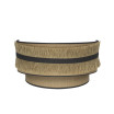 Aplique de la serie NATALIA, formado por dos cuerpos confeccionados en tela de SACO y tela de lino rayado de color NEGRO. Posee un portalámparas E27. Bombilla no incluida. Destaca por su pasamanería de flecos y cinta de colores, resultando una serie moderna y muy decorativa. Ideal para dormitorios, entraditas, salones y salas de estar, compatibles tanto con decoraciones rústicas como clásicas o vintage. Tiene unas dimensiones de 17x30x15 centímetros. En esta serie podemos encontrar colgantes, sobremesas, apliques, plafones y pies de salón, todos combinando el tejido de saco con lino blanco, naranja, negro, beis ó turquesa, y con monturas en negro, blanco, cuero ó níquel.
