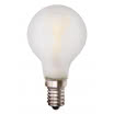 Bombilla Led de filamento esférica. Posee 4W de potencia, 400 lúmenes y 3000ºK de color de luz. El portalámparas es E14 y sus dimensiones son 6,5×4,5×4,5 cm.