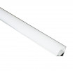 Caja de aluminio escuadra de 2 metros de longitud, sin perfil para colocar en superficie, para cinta LED de hasta 15 milímetros con difusor en color blanco. Tiene una medida exterior de 1,5x2x200 centímetros.