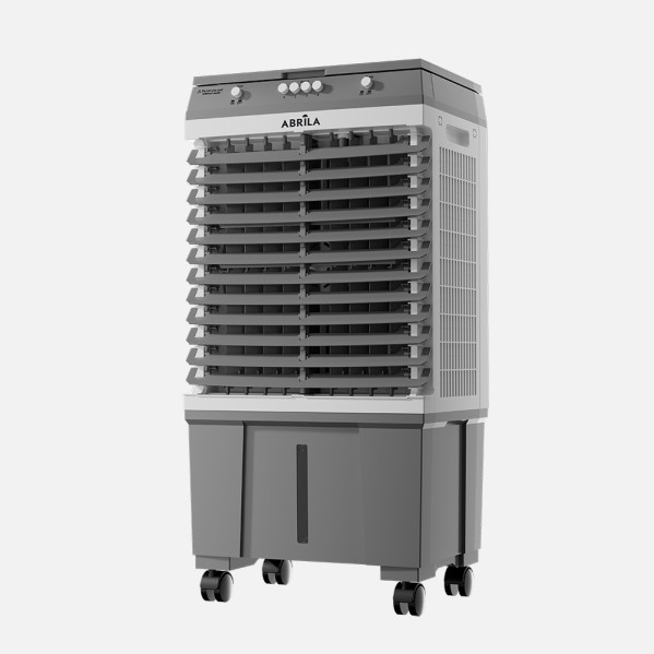 Climatizador Industrial portátil de la serie TITANIC con TANQUE DE AGUA DE 20 LITROS, en color GRIS/BLANCO. Realizado en metal, ABS y PVC.  Con 65 vatios de potencia máxima , desarrolla tres modos de trabajo: la función de HUMIDIFICADOR, VENTILACIÓN y REFRIGERACIÓN POR AGUA,  con 4 acumuladores de frío incluidos para enfriar rápidamente, sus lamas interiores son OSCILANTES de izquierda a derecha de forma automática y las exteriores también ORIENTABLES en el plano vertical de forma manual, para distribuir el aire de forma uniforme y con la dirección y frecuencia que desee elegir, con tres velocidades para seleccionar en cada momento, la que mejor se adapte a la temperatura deseada. Refresca y humidifica rápidamente cualquier estancia, terraza, obra, nave o patio devolviendo a el aire el porcentaje de humedad necesaria para crear un ambiente saludable y limpio. Presenta en su estructura una ventana donde se observa el nivel de agua restante de su depósito. Tiene unas dimensiones de 77X38X28 centímetros. Con cuatro ruedas y un asa en su estructura que hacen fácil su traslado de una habitación a otra.