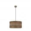 Colgante de la serie ALEXANDRA en color CUERO/MADERA OSCURA. Realizado en metal y textil. Se caracteriza por el diseño moderno del dibujo étnico que crea su doble pantalla calada y sus terminaciones simulando madera, resultando una bonita composición para decorar e iluminar cualquier estancia del hogar o lugar de trabajo. Posee un portalámparas E27. Bombilla no incluida. Tiene una dimensión regulable en altura de 45<,108x40x40 centímetros. En esta misma serie podemos encontrar los colgantes de 60, 50, 40 y 30 centímetros de diámetro, el pie de salón y dos tamaños de sobremesa. Todos también disponible en las combinaciones de colores madera clara, madera oscura, madera gris y madera negra.