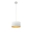 Colgante de la serie ANUSKA de color BLANCO con pantalla BLANCO/ORO. Posee un portalámparas E27. Bombilla no incluida. Tiene unas dimensiones, regulables en altura, de 47<,110x30x30 centímetros. Serie con diseño muy elegante y decorativo gracias al juego de sus pantallas con interior en color dorado. Con una gran variedad de artículos en esta serie que aportan calidez a salones, dormitorios, comedores y salas de estar, se pueden combinar a su elección los colgantes de 50, 40 y 30 centímetros de diámetro, dos tamaños diferentes de sobremesas, aplique, plafones de 48, 72 y 96 watios y el pie de salón, cubriendo cualquier necesidad de iluminación en su hogar o lugar de trabajo.