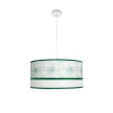 Colgante de diseño con tres luces de la serie CALEDONIA de color BLANCO/VERDE. Realizado en metal y textil. De estilo moderno, presenta en su pantalla un contraste de colores, ribeteada con cinta de terciopelo verde, resultando muy original y decorativo para iluminar en dormitorios, comedores, salones y zonas de trabajo, creando un ambiente fresco y acogedor. Posee tres portalámparas E27. Bombillas no incluidas. Su pantalla tiene un diámetro de 60 centímetros con DIFUSOR INCLUIDO. El colgante, con altura regulable, tiene unas dimensiones de 36<,100x60x60 centímetros. En esta serie, encontramos a juego los colgantes de 30, 40, 50 y 60 centímetros de diámetro, regleta de 3 luces, plafón de 3 luces, lámparas de 2, 3 y 4 luces, el pie de salón, aplique y dos tamaños de sobremesas, todas las versiones combinando el color blanco con el estampado y cinta en verde.