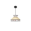 Colgante de la serie CONSTANTINOPLA de color BEIS/ROJO ribeteada con cinta y pendel en NEGRO. Realizado en material textil y metal. Posee un portalámparas E27, bombilla no incluida. Tiene unas dimensiones, regulables en altura, de 30<,65X30X30 centímetros. Pantalla moderna de diseño muy original, tanto por su forma, como por la combinación de colores y texturas de sus tejidos, mezclando tejido estampado con rafia natural, resultando una composición única para decorar cualquier rincón o estancia, poniendo siempre un toque de color y sofisticación. Disponible en esta serie los colgantes de 30, 40 y 50 centímetros de diámetro, regleta y plafón con tres colgantes, dos tamaños de sobremesas y el pie de salón, todos con la combinación en beis/verde o beis/roja, para elegir la que mejor le vaya a su decoración.