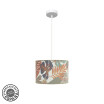 Colgante de una luz de la serie ETIOPIA de color BLANCO y pantalla de diseño ESTAMPADO CALDERA. Realizado en metal y textil. De estilo moderno, pero con líneas sencillas, idóneo para ambientes decorados con los nuevos estilos de decoración en los que se incluyen plantas y estampados florales creando contrastes. Los colores de su estampado transmiten tranquilidad y equilibrio al ambiente que iluminan, idóneos para ambientes cálidos y frescos al mismo tiempo. Muy decorativo, perfecto para mezclarse con otras estéticas creando un espacio único, con personalidad y estilo en dormitorios, salones, comedores y zonas de trabajo. Posee un portalámparas E27. Bombilla no incluida. Sus dimensiones, regulables en altura, son de 35<,111x30x30 centímetros. Podemos adquirir en esta serie una gran cantidad de productos a juego como son colgantes de 50, 40 y 30 centímetros de diámetro, dos tamaños de sobremesas y el pie de salón, todos combinando con blanco/estampado.