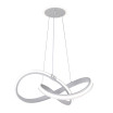 Colgante de la serie GLOW de color BLANCO. Este moderno colgante LED está realizado en metal y acrílico. Posee tecnología LED INTEGRADO con 129 Vatios de potencia en su luz principal, 10920 lúmenes y con 3 TEMPERATURAS SELECCIONABLES DE LUZ (3000k, 4000k y 6000k) luz cálida, natural y blanco frío, también equipado con una LUZ AMBIENTE o LUZ DE NOCHE de 7 vatios en la estructura que va pegada al techo, pudiendo dejar solo esta luz encendida, creando un ambiente cálido y acogedor. Viene con MANDO A DISTANCIA incluido y REGULADOR DE INTENSIDAD. Se caracteriza por su diseño con formas curvas y entrelazadas con aspecto brillante, resultando un juego lumínico muy interesante suspendido por cables. Sus dimensiones, regulables en altura, son de 50<,120x58x58 centímetros.