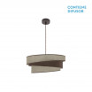 Colgante de diseño de la serie HARA de color MARRÓN con pantalla MARRÓN. Realizado en metal y textil. De estilo moderno, presenta en su pantalla un contraste de colores, creando un ambiente ideal para iluminar dormitorios, comedores, salones y zonas de trabajo. Posee dos portalámparas E27. Bombillas no incluidas. Su pantalla tiene un diámetro de 50 centímetros, con altura regulable de 40<,103x50x50 centímetros. En esta serie, encontramos a juego los colgantes de 35, 40 y 50 centímetros de diámetro, el pie de salón, y dos tamaños de sobremesa, todas las versiones con sus tres colores correspondientes: níquel/gris, cromo/blanco-negro y marrón/marrón. Una amplia gama para elegir el que mejor se adapte a su decoración dando un toque de color a la estancia que ilumina.