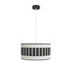 Colgante de la serie IVANNA de color NEGRO con pantalla en BLANCO/MADERA NEGRA. Posee un portalámparas E27. Bombilla no incluida. Destaca su original pantalla cilíndrica con entredós y pasa cinta en colores madera, resultando una combinación muy moderna y elegante, ideal para decorar e iluminar en entraditas, salones, despachos y salas de estar. Muy acorde tanto para decoraciones rústicas como modernas o vintage. Tiene unas dimensiones, regulables en altura, de 47&lt,110x40x40 centímetros. En esta serie podemos encontrar los colgantes de 60, 50, 40 y 30 centímetros de diámetro, dos tamaños diferentes de sobremesas, aplique, plafones de 48, 72 y 96 watios y el pie de salón, todos combinando con colores madera.