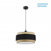 Colgante serie KANDY de color NATURAL/NEGRO de 50 centímetros de diámetro. Posee dos portalámparas E27. Bombillas no incluidas. Pantalla formada por dos cuerpos en textil y florón metálico de color negro. De estilo moderno y diseño elegante, ideal para decorar e iluminar en dormitorios, salones y salas de estar, aportando calidez a la estancia que ilumina. Sus dimensiones son regulable en altura, de 46<,115x50x50 centímetros. En esta serie podemos encontrar los colgantes de 60, 50 y 40 centímetros de diámetros, dos tamaños diferentes de sobremesas, los apliques y el plafón de tres colgantes, todos combinando arpillera natural con textil en color blanco, negro, gris o marrón.