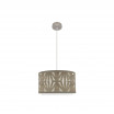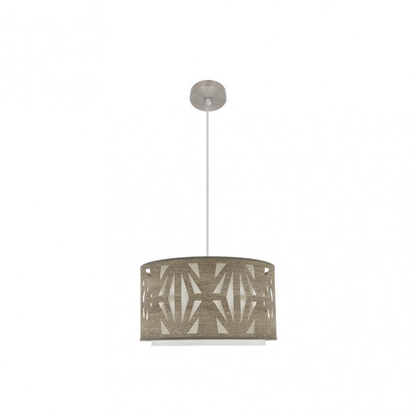 Colgante serie KATERINA en color NIQUEL/MADERA GRIS. Realizado en metal y textil, se caracteriza por el diseño moderno del dibujo que crea su pantalla calada, resultando una bonita composición para decorar e iluminar cualquier estancia del hogar o lugar de trabajo. Posee un portalámparas E27. Bombilla no incluida. Tiene una dimensión regulable en altura de 45<,108x40x40 centímetros. En esta misma serie podemos encontrar los colgantes de 60, 50, 40 y 30 centímetros de diámetro, un pie de salón y dos modelos de sobremesa. Todos también disponible en las combinaciones de colores madera clara, madera oscura, madera gris y madera negra.