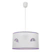 Colgante de la serie LLUVIA con portalámparas E27 y pantalla en textil color lila. Su altura se puede regular entre 30 y 75 centímetros de altura y tiene un diámetro de 30 centímetros. Su peso neto es de 340 gramos.