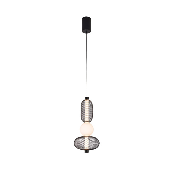 Colgante de la serie MIMOSA de color NEGRO. Este moderno colgante LED está realizado en metal y cristal. Posee tecnología LED INTEGRADO con 13 vatios de potencia, 1430 lúmenes y 4000k de temperatura de luz, blanco natural. Se caracteriza por su diseño original, combinando en su parte central dos cuerpos geométricos realizados en malla metálica y atravesados por un tubo lumínico de cristal y unidos por una tulipa esférica también de cristal, resultando una bonita composición suspendida por un cable y muy decorativa. Estos colgantes dan juego a la hora de poder realizar composiciones diferentes con varios colgantes iguales o de diseños diferentes de esta misma serie, dando un toque exclusivo, elegante y sofisticado para decorar en dormitorios, comedores, salones y zonas de trabajo como restaurantes, salones de celebración, despachos, etc. Ideal para estancias decoradas con los nuevos estilos de decoración, en el que se mezclan texturas y materiales diferentes, dando lugar también a decoraciones Vintage y Boho Chic, haciéndose el centro de la estancia que iluminan. Tiene unas dimensiones, regulables en altura, de 60<,211x22x22 centímetros. En esta misma serie encontramos hasta cuatro tipos diferentes de colgantes modernos, sobremesa y pie de salón, todos a juego.