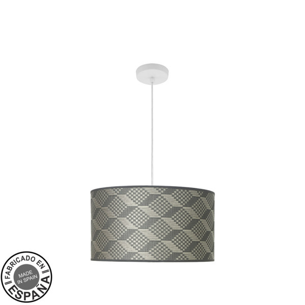 Colgante de dos luces de la serie MODA de color BLANCO y pantalla de diseño TETRIS GRIS. Viene con DIFUSOR INCLUIDO. De estilo moderno, pero con líneas sencillas, idóneo para ambientes decorados con los nuevos estilos como el minimalista, Boho Chic o incluso Industrial a juego con el resto de su decoración, mezclando colores y texturas. Aportan calidez a salones, dormitorios, salas de estar y centros de trabajo. Posee dos portalámparas E27. Bombillas no incluidas. Tiene unas dimensiones, regulables en altura, de 35<,105x40x40 centímetros. Podemos adquirir en esta serie una gran cantidad de productos a juego, con una gran variedad de diseños y colores de pantallas en sus ventiladores, tres tamaños de colgantes, apliques, sobremesas y pies de salón.