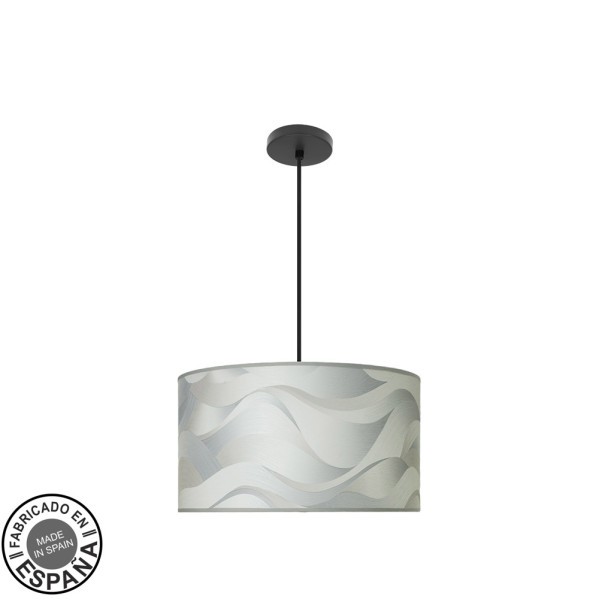 Colgante de dos luces de la serie MODA de color NEGRO y pantalla de diseño OLA GRIS. Viene con DIFUSOR INCLUIDO. De estilo moderno, pero con líneas sencillas, idóneo para ambientes decorados con los nuevos estilos como el minimalista, Boho Chic o incluso Industrial a juego con el resto de su decoración, mezclando colores y texturas. Aportan calidez a salones, dormitorios, salas de estar y centros de trabajo. Posee dos portalámparas E27. Bombillas no incluidas. Tiene unas dimensiones, regulables en altura, de 35<,105x40x40 centímetros. Podemos adquirir en esta serie una gran cantidad de productos a juego, con una gran variedad de diseños y colores de pantallas en sus ventiladores, tres tamaños de colgantes, apliques, sobremesas y pies de salón.