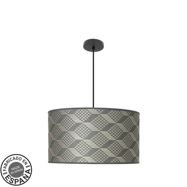 Colgante de tres luces de la serie MODA de color NEGRO y pantalla de diseño TETRIS GRIS. Viene con DIFUSOR INCLUIDO. De estilo moderno, pero con líneas sencillas, idóneo para ambientes decorados con los nuevos estilos como el minimalista, Boho Chic o incluso Industrial a juego con el resto de su decoración, mezclando colores y texturas. Aportan calidez a salones, dormitorios, salas de estar y centros de trabajo. Posee tres portalámparas E27. Bombillas no incluidas. Tiene unas dimensiones, regulables en altura, de 35<,105x50x50 centímetros. Podemos adquirir en esta serie una gran cantidad de productos a juego, con una gran variedad de diseños y colores de pantallas en sus ventiladores, tres tamaños de colgantes, apliques, sobremesas y pies de salón.