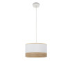 Colgante de la serie OLGA de color BLANCO con pantalla confeccionada en colores BLANCO/MADERA CLARA. Realizado en textil y metal. Posee un portalámparas E27. Bombilla no incluida. El original diseño de sus pantallas, combinando el blanco con colores madera clara o madera negra, hace que esta serie pueda combinarse con distintos estilos de decoración, desde el moderno al rústico, muy acorde también con decoraciones naturales o minimalistas. Aportan calidez a comedores, dormitorios, salones y centros de trabajo. Tiene unas dimensiones, con altura regulable, de 47<,110x30x30 centímetros. Se puede completar con toda una serie de artículos a juego, como colgantes, plafones, sobremesas, apliques y pies de salón, para cubrir todas las necesidades de iluminación que requiera su hogar o centro de trabajo.