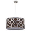 Colgante serie ORLANDO en color MARRON/PLATA. Posee un portalámparas E27. Bombilla no incluida. Está realizado en metal y textil de color marrón. Se caracteriza por una pantalla calada con motivos geométricos circulares en metal. Sus medidas, regulables en altura, son de 30<,100x35x35 centímetros. Puede combinarlo con el sobremesa de la misma familia y en los colores rosa, azul, lila y marrón.