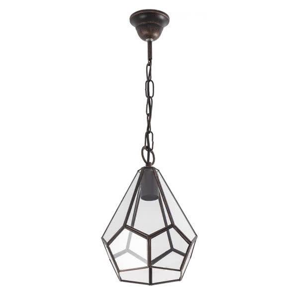 Colgante de la serie OSUNA fabricado en metal color cobre envejecido y cristal. Esta lámpara se puede regular su altura, teniendo unas dimensiones de 40<,61x20x20 centímetros y un peso neto de 750 gramos. Posee un porta lámparas E27, bombilla no incluida. En esta serie podemos encontrar el colgante en color plata, oro y cobre.