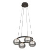 Colgante de cuatro luces de la serie POMPEYA en color NEGRO. Realizado en metal y cristal. Destacan sus tulipas que presentan un diseño muy original y moderno, con cristal fumé transparente dejando apreciar la colina de luces LED de su interior. Sus tulipas se encuentran suspendidas en disposición circular creando así una composición muy decorativa. Posee TECNOLOGIA LED INTEGRADA con una potencia de 28 watios, 2520 lúmenes y TRES TEMPERATURAS SELECCIONABLES de luz 3000k, 4000k y 6000k (luz cálida, blanco natural y blanco frío). Viene con MANDO A DISTANCIA incluido y REGULADOR DE INTENSIDAD, pudiendo crear así varios ambientes dependiendo de la actividad a desarrollar. Ideal para decoraciones modernas aptas para iluminar en salones y comedores, e incluso en zonas de trabajo. Tiene unas dimensiones regulables en altura, de 15<,160x48x48 centímetros. Encontramos una gran variedad de lámparas y colgantes de 3, 4, 5 y luces, para elegir la combinación que mejor se adapte a su decoración.