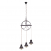 Colgante serie Rueca de color marrón. Realizado en metal y cuerda en estilo Rústico. Posee un diseño inspirado en las ruecas para hilar. La altura de cada colgante se puede regular. Sus dimensiones son 150<,200X44x44 cm y los portalámparas E27.