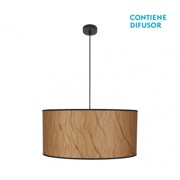 Colgante serie TAPIRO de color NEGRO/PERGAMINO. Realizada en metal y material textil. De diseño clásico pero compatible con el nuevo estilo Vintage, ideal para iluminar en dormitorios, salones, despachos y salas de estar. Posee tres portalámpara E27. Bombilla no incluida. Su dimensión, regulable en altura es de 45&lt,108x60x60 centímetros. En esta misma serie podemos encontrar a juego los colgantes de 30, 40, 50 y 60 centímetros de diámetro, dos medidas de sobremesas, un aplique y el pie de salón.