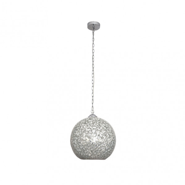 Colgante de la serie TENOR en color CROMO. Realizado en metal y cristal. Su diseño de mosaico resulta muy decorativo y original, ideal para dormitorios, salones, pasillos y entradas, tanto de casas de campo como pisos decorados con estilo moderno o clásico. Posee un portalámparas E27. Bombilla no incluida. Tiene unas dimensiones, regulables en altura, de 33<,111x25x25 centímetros. En esta serie se encuentran a juego los apliques, colgantes y plafones tanto circulares como cuadrados, todos en terminación de mosaico en cromo o mosaico en ámbar.