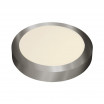 Downlight redondo de superficie de la serie DIABASA realizado en aluminio color NIQUEL y policarbonato, con unas medidas de 3,5x30x30 centímetros y un peso neto de 665 gramos. Posee LED INTEGRADO con una potencia de 24 watios con 2040 lúmenes y una temperatura de 4000K (luz natural). En esta serie podemos encontrarlos de 18 y 12 watios, también con una temperatura de 6500k (luz super blanca), y todos los modelos y tamaños los hay disponibles en color blanco.
