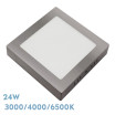 Downlight cuadrado de superficie de la serie GABRO en color NIQUEL. Realizado en aluminio y policarbonato, con unas medidas de 3,5x29x29 centímetros. Posee LED INTEGRADO con una potencia de 24 watios, 2160 lúmenes y SELECCIONABLE EN EL MONTAJE en TRES TEMPERATURAS DE LUZ, 3000-4000-6500K (luz cálida, natural ó blanco frío). En esta serie podemos encontrarlos de 24,18 y 12 watios, con una temperatura de 3000-4000-6500K, y disponibles tanto en color blanco como en níquel.