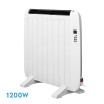 Emisor Térmico de Auminio eléctrico de la serie GABAN, de moderno diseño en color BLANCO. Realizado en metal, policarbonato y aluminio. Equipado con 1200 watios de potencia que calientan sus 8 elementos calefactores de aluminio en forma de X, lo que permiten calentar de manera rápida, homogénea y eficaz cualquier estancia. Con pantalla LCD, MANDO A DISTANCIA con control de Termostato Ajustable, Temporizador diario y semanal, programable hasta 24h los siete días de la semana, sistema de protección sobrecalentamiento, sistema antivuelco y rejilla de protección para una mayor seguridad. Se presenta con un diseño fácil de transportar gracias a su tamaño y peso, pudiendo transportarlo a la habitación que necesite calentar, aunque también puede instalarse en la pared de forma fija, ahorrando espacio. Tiene unas dimensiones de 58,5x72x5,5 centímetros.