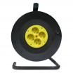 Enrollacable múltiple con 4 enchufes y Termostato de Seguridad, color NEGRO/AMARILLO, con 25 metros de cable flexible de 3 hilos de cobre x 1,5 mm y protección infantil. Con 3250 watios de potencia máxima totalmente extendido, 1000 watios enrollado y 16 A. Realizado con materiales resistentes como son el polipropileno y el cobre. Con pie y útil asa para transportar, tiene unas dimensiones enrollado de 35x27x19,5 centímetros. Disponible en nuestra web, una amplia gama de alargadores de distintas longitudes de cable, con y sin interruptor de corte, con y sin puerto USB, simples ó múltiples e incluso enrollables.