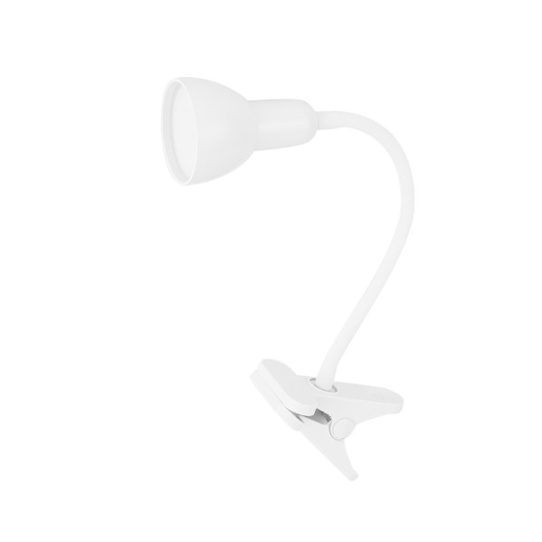 Flexo de la serie GATES de color BLANCO. Realizado en silicona y ABS. De estilo moderno, flexible y orientable, se caracteriza por su cogida en forma pinza que permite ubicarlo sobre cualquier superficie como a una mesa, repisa o cabecero, ideal para cuartos infantiles o estancias con poco espacio. Posee TECNOLOGÍA LED INTEGRADO con 6 watios de potencia, 450 lúmenes y 5000k, blanco neutro. Tiene unas medidas de 31x7x11,5 centímetros. Disponible en blanco, negro y gris.