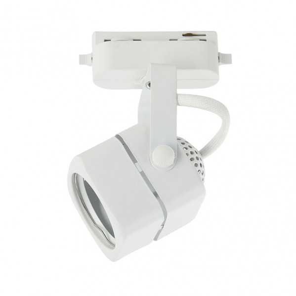 Foco de carril serie ARTA de color BLANCO. Realizado en aluminio. Presenta un cuerpo con forma cúbica y orientable 180º, pudiendo así dirigir la luz. Posee un portalámparas GU10. Bombilla no incluida. Sus dimensiones son de 14,2×7,6×6 cm. Se puede adaptar a cualquiera de los carriles disponible en nuestra web. Foco para sistema de carril monofásico, como todos nuestros focos y carriles. Disponible también en color negro y con forma cilíndrica.