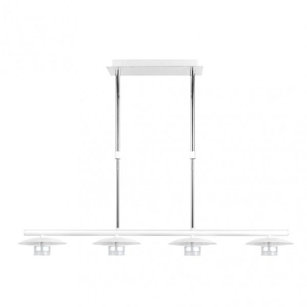 Lámpara de cuatro luces serie CIUDAD DEL CABO de color BLANCO/PLATA. Se compone de un cuerpo rígido con forma lineal, realizado en metal, del cual nacen sus pantallas, también metálicas que coronan los focos de TECNOLOGÍA LED INTEGRADO. Con una potencia de 24 watios y 1920 lúmenes. Tiene una temperatura de luz de 4000K ( blanco natural). Su original diseño ofrece una versión sofisticada del estilo moderno, ideal para salones u hogares con estilos decorativos afines, resultando una composición muy elegante la combinación del blanco y la terminación en pan de plata,  e incluso acorde con el nuevo estilo Industrial, también idóneo para bares y zonas de trabajo. Su dimensión, regulable en altura, es de 40&lt,62x85x15 centímetros. En esta familia, podemos encontrar una amplia gama de diseños como son el colgante de dos y tres luces, lámparas de cuatro y cinco luces, sobremesas de una y dos luces y el pie de salón. Todos ellos también disponibles en color negro/oro.