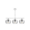Lámpara de tres luces de la serie ESTELA de color BLANCO. Realizada en metal y cristal. Posee tres porta lámparas E14. Bombillas no incluidas. Destaca por el diseño moderno y original de sus tulipas de cristal transparente tallado, resultando una bonita composición muy decorativa para dormitorios, comedores, salones y salas de estar e incluso para zonas de trabajo decoradas con estilo moderno, encajando también muy bien en ambientes decorados con los nuevos estilos Industrial, Vintage y Shabby Chic, mezclando diferentes texturas y estilos. Sus dimensiones, regulables en altura, son de 45<,57x55x13 centímetros. En esta serie podemos encontrar varias piezas como lámparas, colgantes, plafones y regletas, en cuero, cromo, marrón ó blanco, de una, dos, tres y cuatro luces, pudiendo combinar elementos y a diferentes alturas, para que elija entre una gran variedad de combinaciones, la que más se adapte a sus gustos y necesidades.