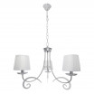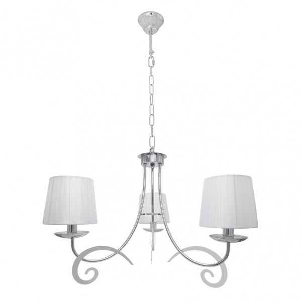Lámpara de tres luces serie LUXOR en color CROMO con pantallas BLANCAS. Está realizada en metal y material textil. Posee un cuerpo de diseño muy original a la vez que elegante, compatible con decoraciones clásicas y también con el nuevo estilo Vintage. Posee tres porta lámparas E14. Bombillas no incluidas. Sus dimensiones, regulable en altura, son de 58<,87x58x58 centímetros. La familia se completa con el sobremesa, el aplique y la lámpara de cinco luces. También todos disponibles en color cuero con pantalla beis.