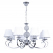 Lámpara de ocho luces serie ORDOÑEZ de color CROMO con la pantalla de color BLANCO. Esta lámpara forma parte de una familia muy completa (sobremesa, aplique, lámpara de tres y cinco luces) donde el detalle del cristal toma gran protagonismo. Dos esferas en este mismo material componen el cuerpo de la lámpara acompañado por una U en metal. Todo el conjunto aporta gran elegancia. El portalámparas es 8xE14 y sus medidas, regulables en altura, son de 56<,86x76x76 cm. También a juego con la serie HONDURAS.