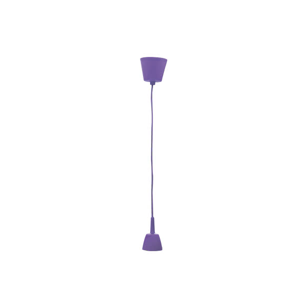 Montura para colgante de color lila. Sus dimensiones son 25<,60X9X9 cm, con altura regulable. El peso neto son 95 gramos y el portalámparas E27. Realizado en policarbonato.
