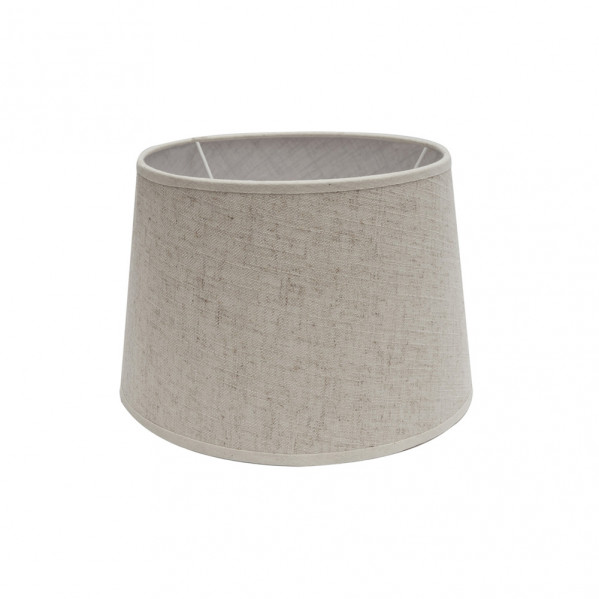 Pantalla cónica abierta serie AGUEDA de color BEIS. Realizado en material textil lino. Diseñada para un portalámparas E27. Sus dimensiones son de 35x25x20 centímetros y un peso neto de 250 gramos. También disponible en color gris y en varios tamaños.