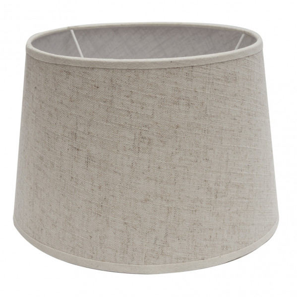 Pantalla cónica abierta serie AGUEDA de color BEIS. Realizado en material textil lino. Diseñada para un portalámparas E27. Sus dimensiones son de 45x35x30 centímetros y un peso neto de 500 gramos. También disponible en color gris y en varios tamaños.