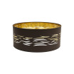 Pantalla de la serie NIEBLA en color MARRON/ORO. Realizado en material textil. Se caracteriza por su moderno y original diseño que crea el dibujo calado, dejándose ver el color oro de su interior, y resultando un bonito juego de color para cualquier estancia del hogar o lugar de trabajo. Preparada para cogida en un portalámparas E27. Tiene una dimensión de 50x50x20 centímetros. En esta misma serie podemos encontrar las pantallas de 50, 40 y 17 centímetros de diámetro y en las combinaciones de colores blanco-oro, blanco-plata, marrón-oro y marrón-plata.