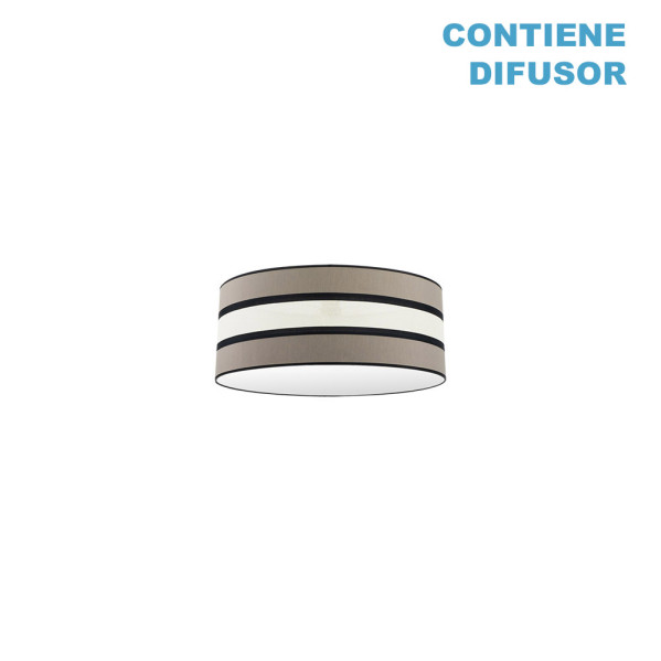 Pantalla de la serie KARLA de color TOPO/BEIS y vivo en negro. Realizada en material textil. Destaca su diseño moderno y la combinación de sus colores. Pantalla muy elegante, compatible con el nuevo estilo Vintage, ideal para colgantes y Pies de Salón, para decorar en dormitorios, comedores, salones, despachos y salas de estar. Diseñada para cogida con E27. Su dimensión es de 40x40x21 centímetros. En esta misma serie podemos encontrar las pantallas de 14, 17, 25, 40, 50 y 60 centímetros de diámetro, todas en color blanco/beis y topo/beis.