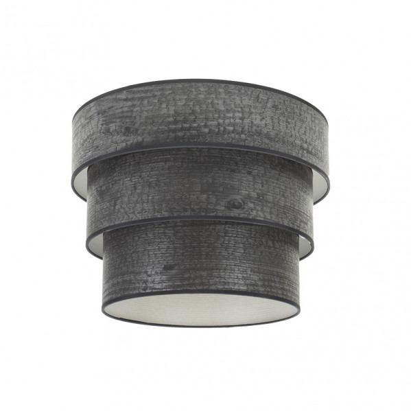 Pantalla de la serie SMILE de color MADERA NEGRA. Realizado en material textil. Diseñada para cogida a un portalámparas E27. Formada por tres cuerpos dispuestos por tamaños descendentes de mayor a menor, resultando una composición de diseño muy original y moderno, recordando a la madera, ideal para colgantes y decorar en salones, dormitorios, comedores y zonas de trabajo. Tiene unas dimensiones de 40x20x26 centímetros. Podemos encontrar en esta serie varios tamaños y diseños, todos realizados en tejidos que nos recuerdan a madera clara, madera oscura, madera gris, óxido y madera negra.