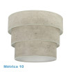 Pantalla de la serie SMILE de color CEMENTO GRIS. Realizado en material textil. Diseñada para cogida a con METRICA 10. Formada por tres cuerpos dispuestos por tamaños descendentes de mayor a menor, resultando una composición de diseño muy original y moderno, recordando a la madera, ideal para colgantes y decorar en salones, dormitorios, comedores y zonas de trabajo. Tiene unas dimensiones de 50x40x28 centímetros. Podemos encontrar en esta serie varios tamaños y diseños, todos realizados en tejidos que nos recuerdan a madera clara, madera oscura, madera gris, óxido y madera negra.