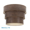 Pantalla de la serie SMILE de color OXIDO. Realizado en material textil. Diseñada para cogida a con METRICA 10. Formada por tres cuerpos dispuestos por tamaños descendentes de mayor a menor, resultando una composición de diseño muy original y moderno, recordando a la madera, ideal para colgantes y decorar en salones, dormitorios, comedores y zonas de trabajo. Tiene unas dimensiones de 50x40x28 centímetros. Podemos encontrar en esta serie varios tamaños y diseños, todos realizados en tejidos que nos recuerdan a madera clara, madera oscura, madera gris, óxido y madera negra.