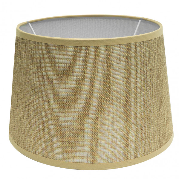 Pantalla cónica abierta serie IRENE de color BEIS. Realizado en material textil saco-yute. Diseñada para un portalámparas E27. Sus dimensiones son de 45x35x30 centímetros y un peso neto de 500 gramos. También en varios tamaños, desde 45 a 10 centímetros de diámetro.