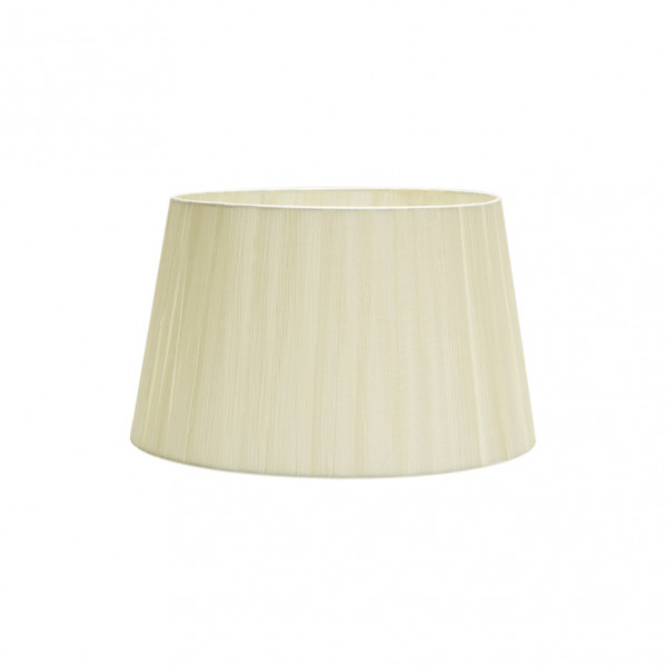 Pantalla cónica abierta serie LAURA de color BEIS. Realizado en material textil plisado tipo bambula. Diseñada para un portalámparas E27. Sus dimensiones son de 35x25x20 centímetros y un peso neto de 395 gramos. También disponible en color blanco y en varios tamaños.