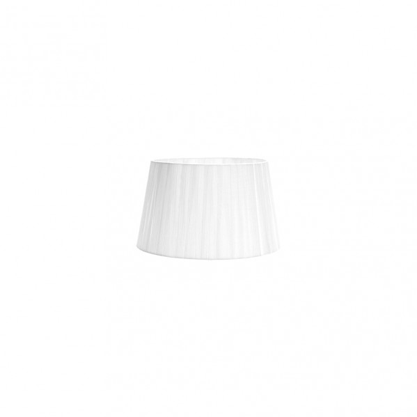 Pantalla cónica abierta serie LAURA de color BLANCO. Realizado en material textil plisado tipo bambula. Diseñada para un portalámparas E27. Sus dimensiones son de 20x15x12 centímetros y un peso neto de 150 gramos. También disponible en color beis y en varios tamaños.